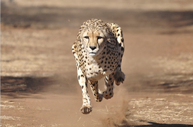 All moving objects have kinetic energy, including a running cheetah and a kicked ball.