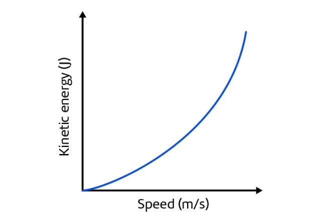 Kinetic energy and speed have a non-linear relationship because the line on the graph is curved.