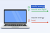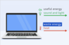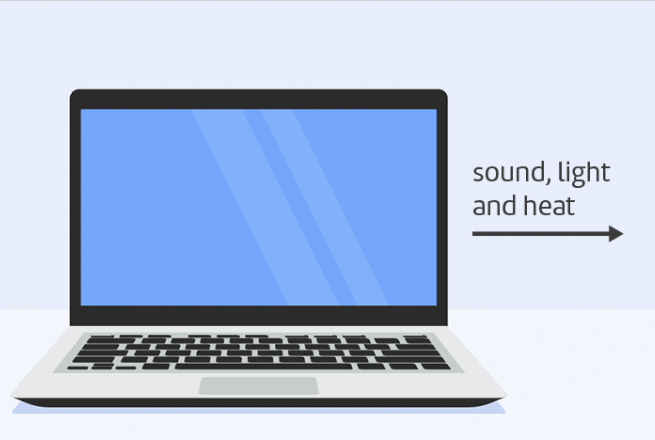 The output energy of a laptop is in the form of light, heat and sound.