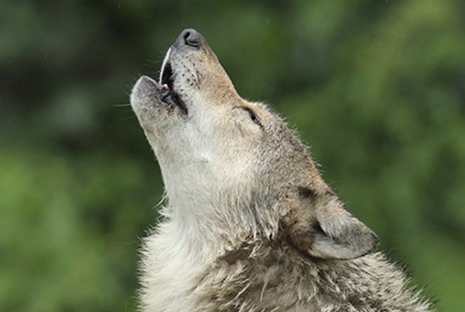 When a wolf howls, vibrations in air spread outwards as sound waves.