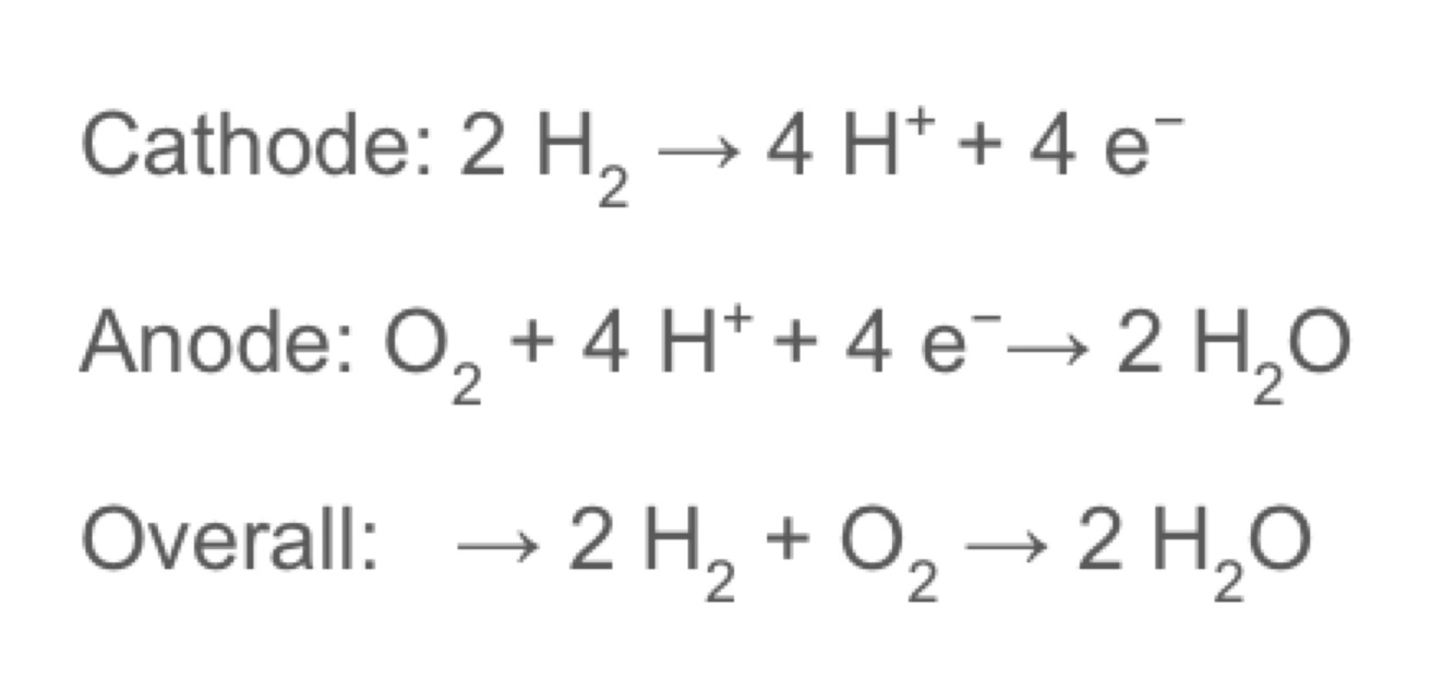 What is the overall reaction in a hydrogen fuel cell? What are the half equations?