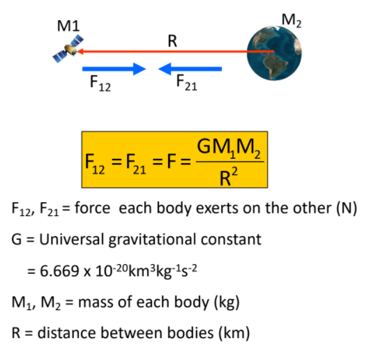 Any two bodies attract each other with a force proportional to the product of their masses and inversely proportional to the square distance between them