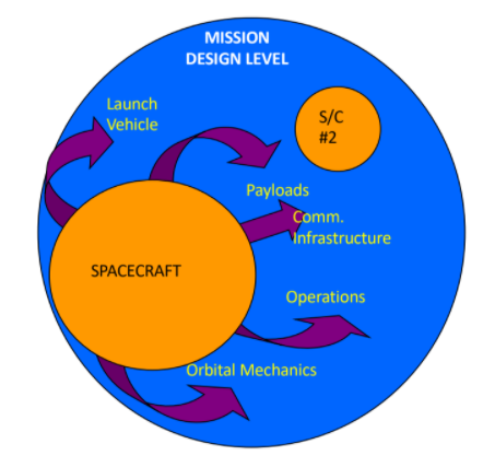 System design brings together many design elements to create a successful, end-to-end (pre-launch to payload disposal) space mission. See the 5 areas below:
