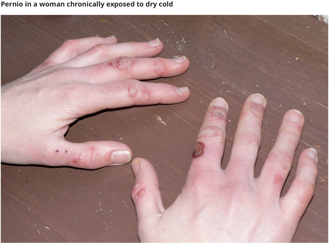 Frostnip: paresthésie locale induite par le froid qui se résout en se réchauffant. Pas de perte tissulaire