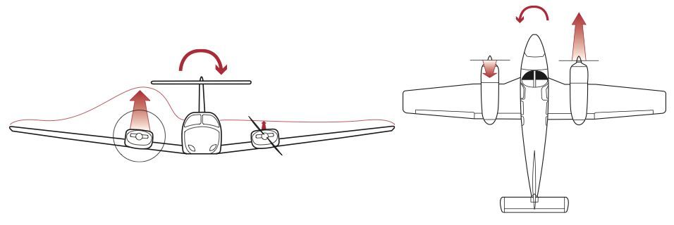 Asymmetric thrust and drag cause the following effects on the aircraft’s axes of rotation: