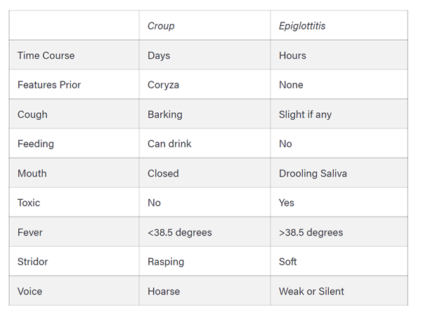 Compare epiglottitis & croup