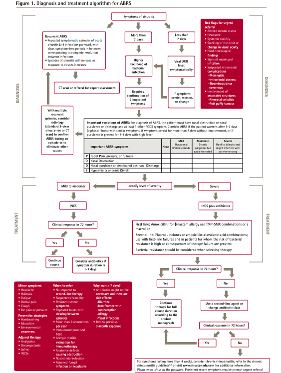 Symptomatic Tx : Oral analgesics, nasal decongestant, INCS, Saline