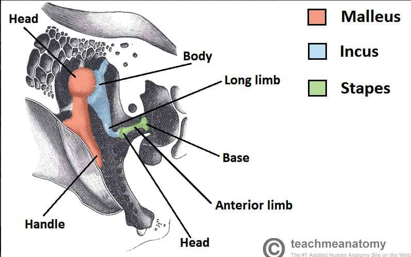 Connect tympanic membrane to oval window, transmit vibrations to detect sound
