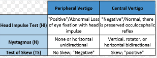 How are peripheral and central causes of vertigo differentiated?