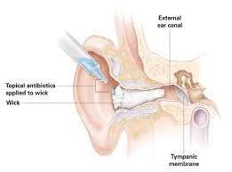 Tx: Topical Antibiotic Drops (Ofloxacin, Cipro/Hydrocortisone) apply using a wick/gauze