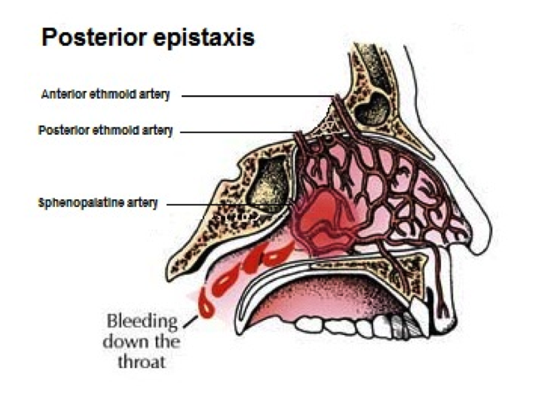-Blood pouring down throat, not coming out front OR blood pouring out nose but you don’t see any anterior source