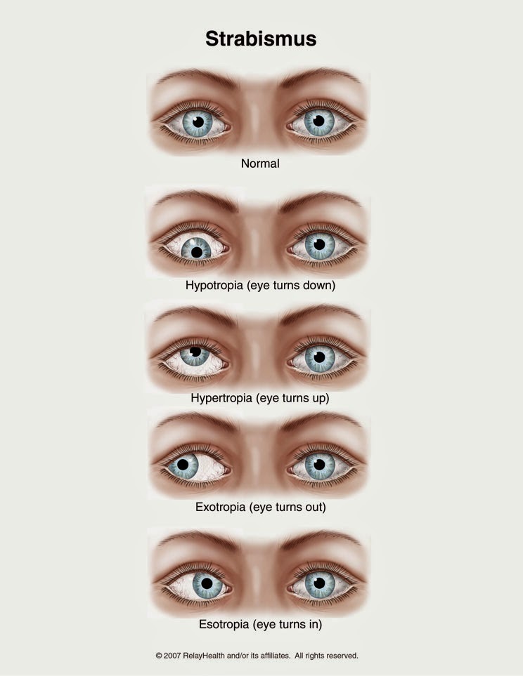 esotropia: convergent strabismus – deviated inward (cross-eyed)