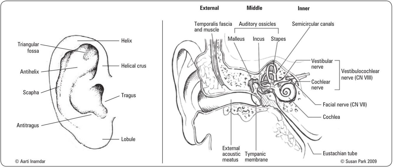 Describe the anatomy of the inner and outer ear.