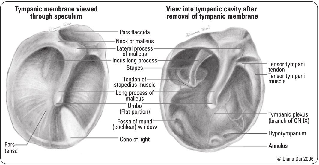 Describe the anatomy of the tympanic memrbane.