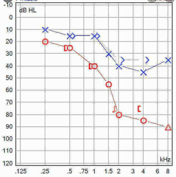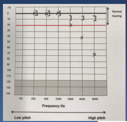 all the ] on all the X’s declining = sensorineural hearing loss