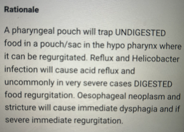 What is the most likely diagnosis in a patient experiencing regurgitation of undigested food eaten a day earlier?