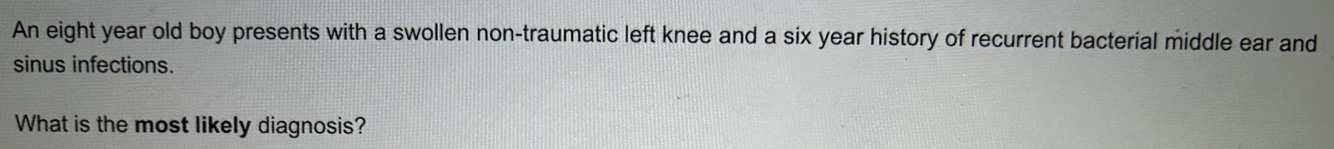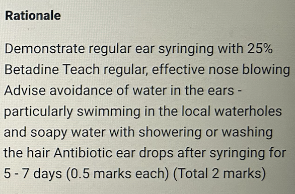 Harold, a three year old Aboriginal boy from a remote community in the North West attends with the district nurse. She reports that the child has chronic mucopurulent discharge from both ears and the nose.