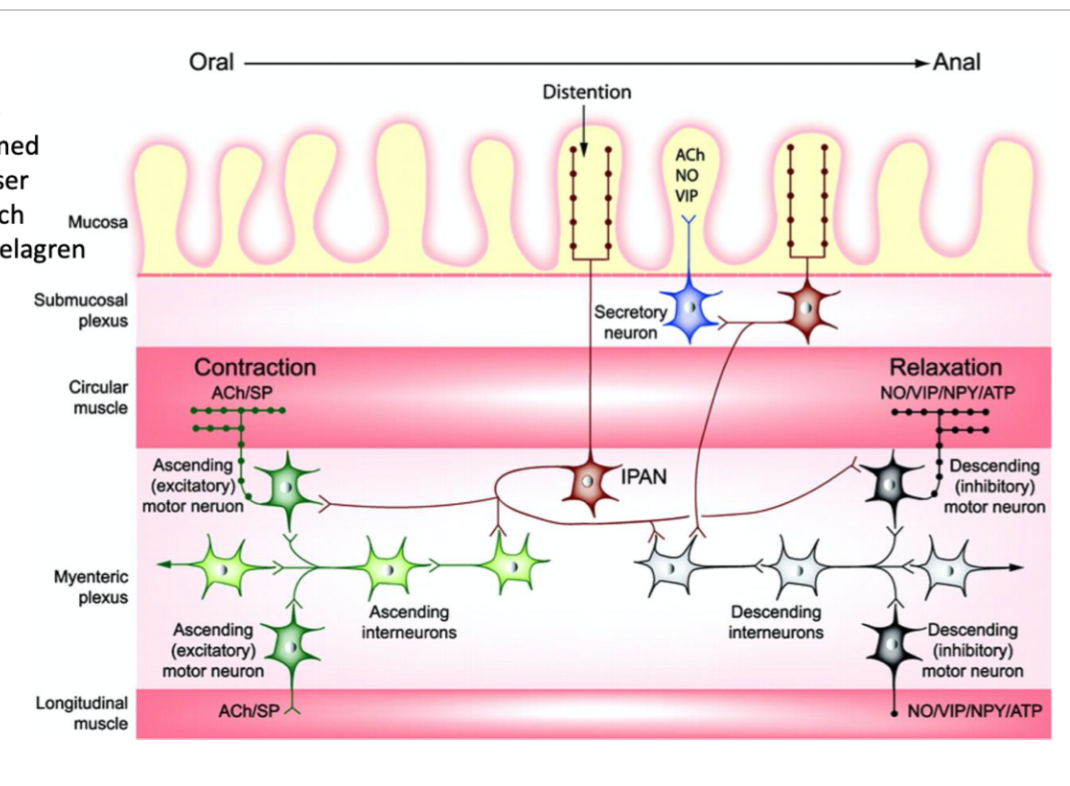 Det finns ett tätt samarbete mellan IPANS, motorneuron och interneuron nere i GI. Leder till en väldigt adekvat peristaltik våg