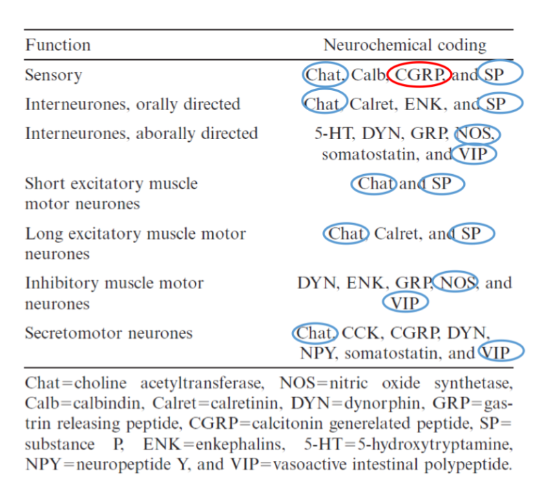 i GI har man sett att substans P, som vanligtvis är kopplad till smärta och temp., verkar kontraherande i motoriska neuron.