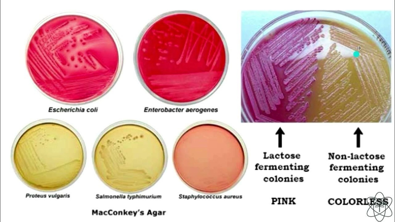 - Morado/rosa → bacteria que sí es fermentadora de lactosa