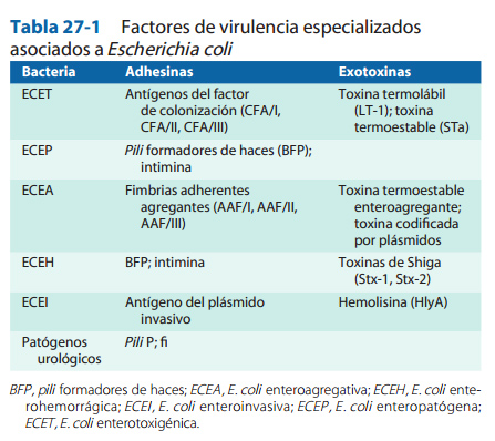 1)ECET: E.coli enterotoxígea 2)ECEP: E.coli enteropatógena 3)ECEA: E. coli enteroagregativa 4) ECEH: E. coli enteroehemorrágica 5) ECEI: E. coli enteroinvasiva
