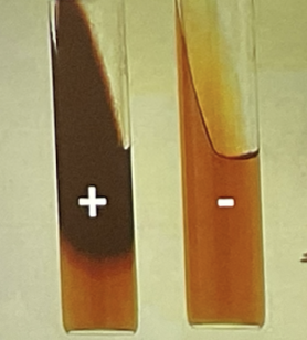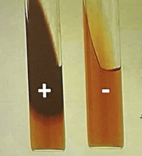 Hidrólisis de la esculina reacciona con hierro y tiñe el medio de color marrón oscuro (+)
