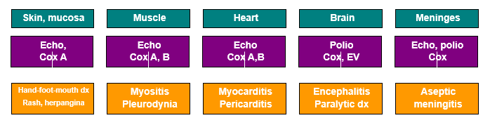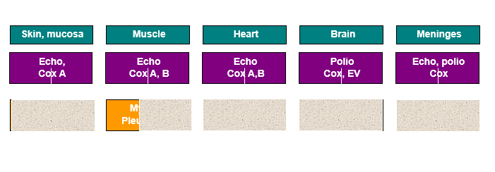 **seems like Coxsackie B1-5 cause anything muscle related**