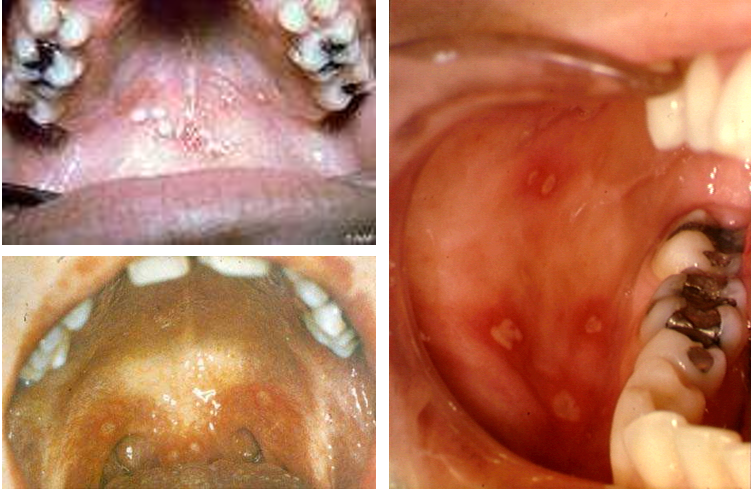 Herpangina/stomatitis: painful vesicles on soft palate & post. pharynx;