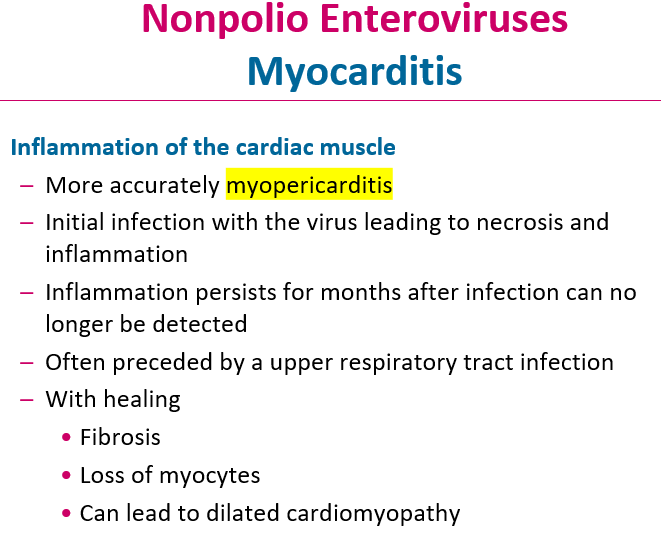 What condition arises from nonpolio enterovirus infection of the heart muscle?