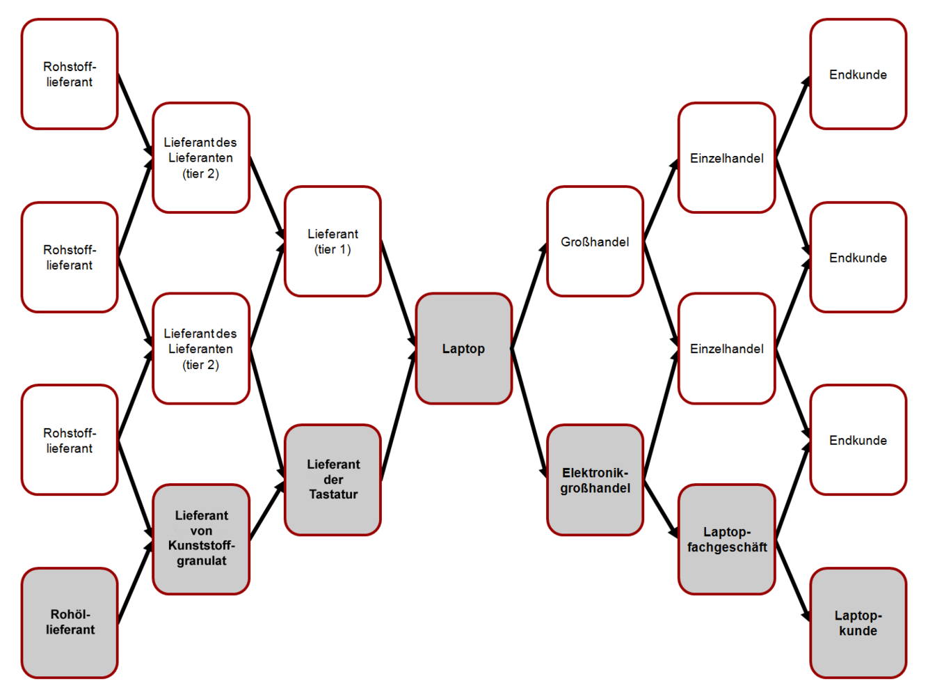 Rohstofflieferant > Silicium-Hersteller > Chip-Hersteller + elektronische Bauteile > Mainboard-Hersteller > Computer-Hersteller > Händler > Kunde