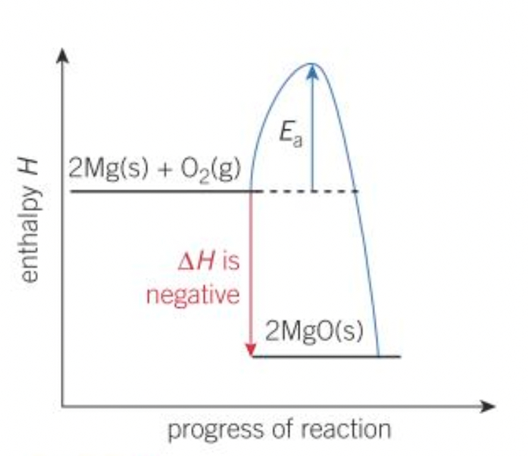 What does the enthalpy profile, including activation energy, look like for an exothermic reaction?