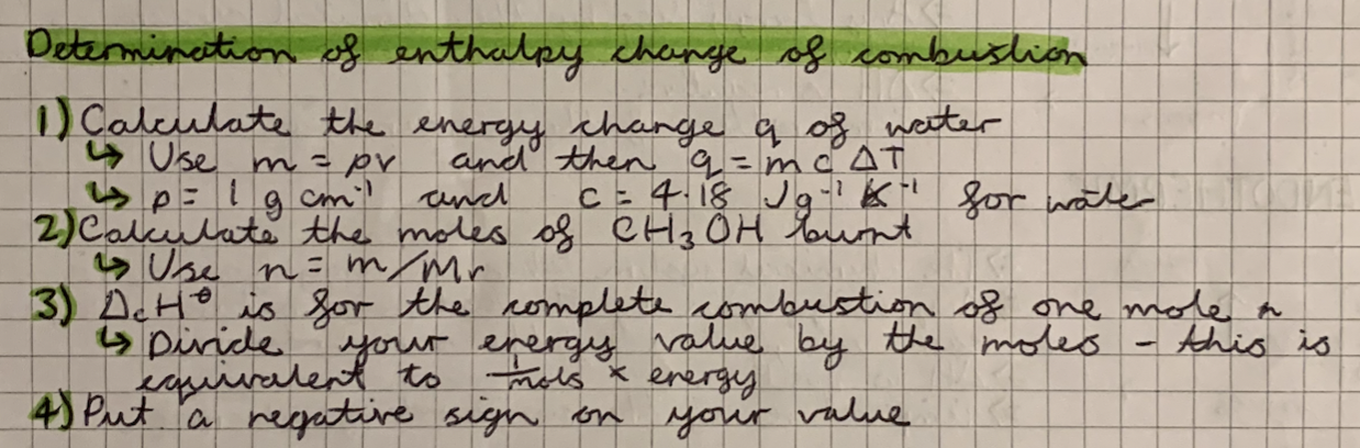 How do you determine the enthalpy change of combustion?