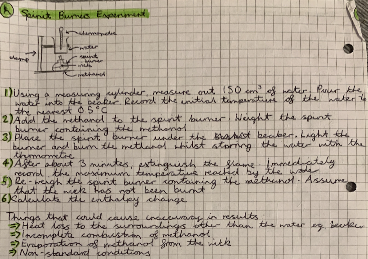 How do you carry out the spirit burners experiment?