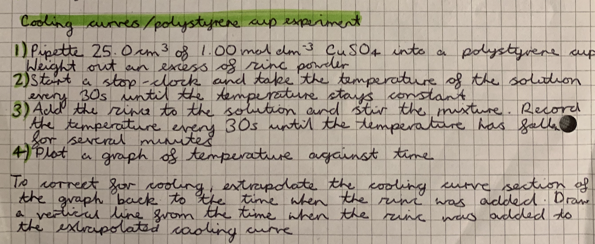 How do you carry out the cooling curves/ polystyrene cup experiment?
