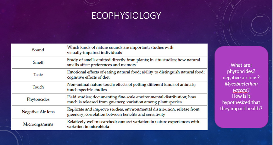 Spending time in nature triggers a physiological response that lowers stress levels (downregulates the HPA axis)