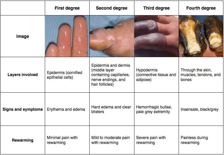 Degrees of frostbite - describe each