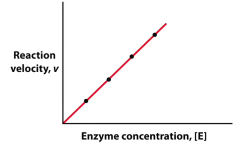 Linear increase, each enzyme of the same type reacts at the same pace