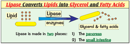 What does lipase do? Where is it made?