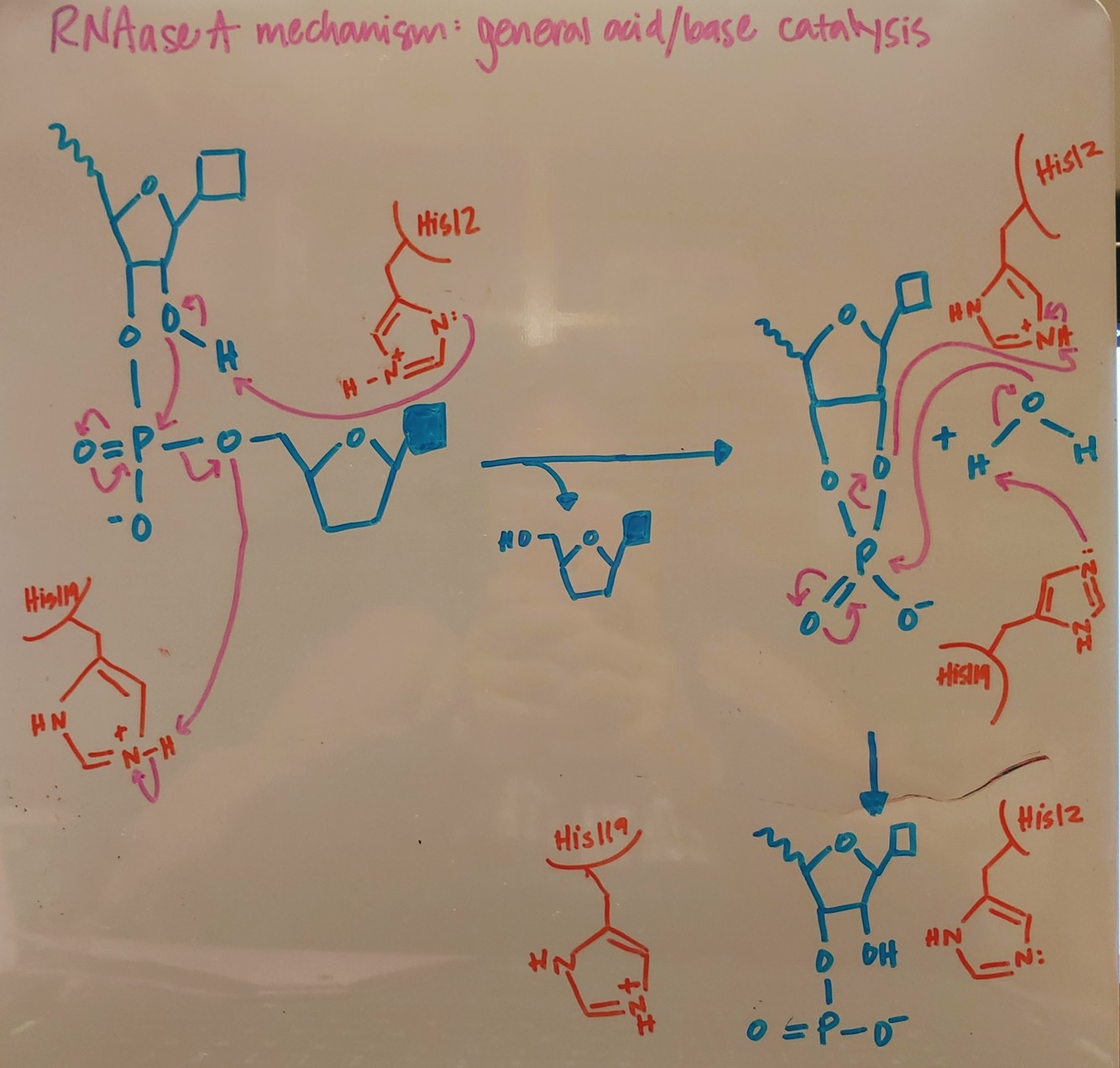 Make sure you understand the mechanism of RNase A (a hydrolase).