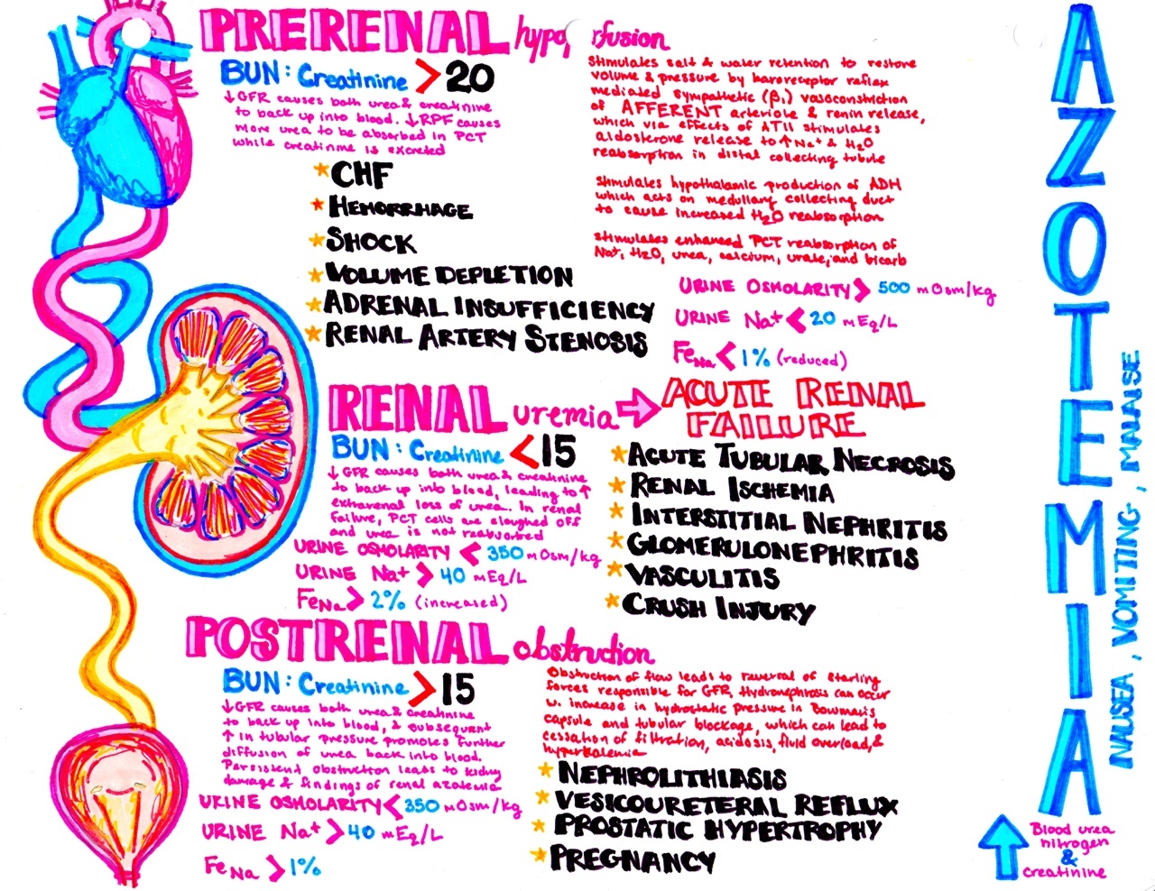 is the cause of prerenal azotemia which may be rapidly reversible when renal blood flow and glomerular ultrafiltration pressure are restored