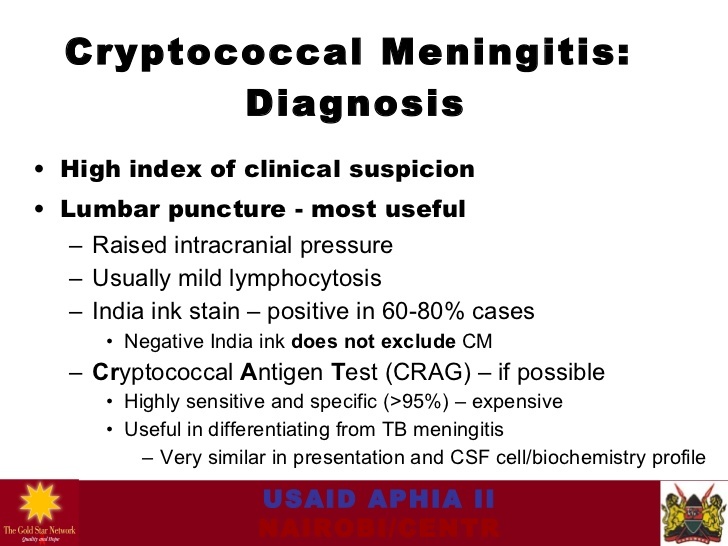 caused by fungus cryptococcus neoformans, common in AIDS and immunocompromised patients. It is considered an AIDS defining illness. Budding yeast found in soil contaminated with pigeon/bird droppings.