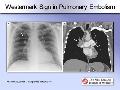 Westermark’s Sign: avascular markings distal to the area of the embolus