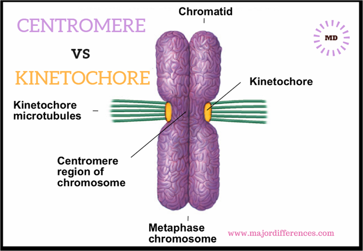 The main difference between centromere and kinetochore is that centromere is the region where the two sister chromatids are held together after the replication of chromosome where kinetochore is the protein complex on the chromosome where spindle fibers are attached during cell division.15 Mar 2017
