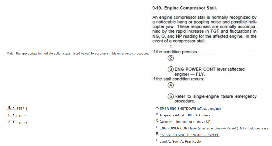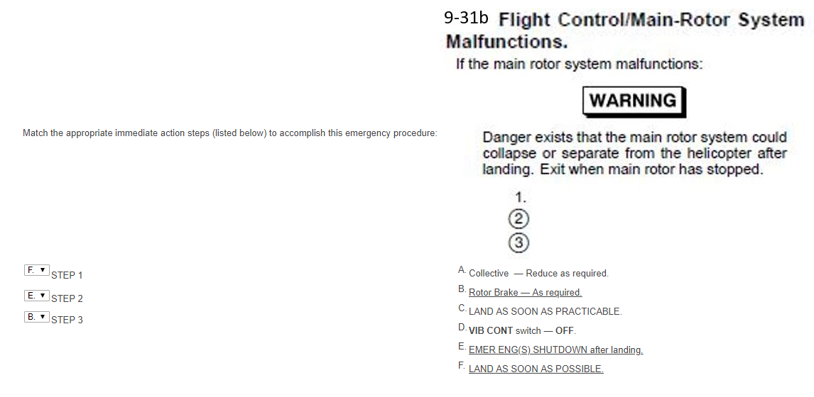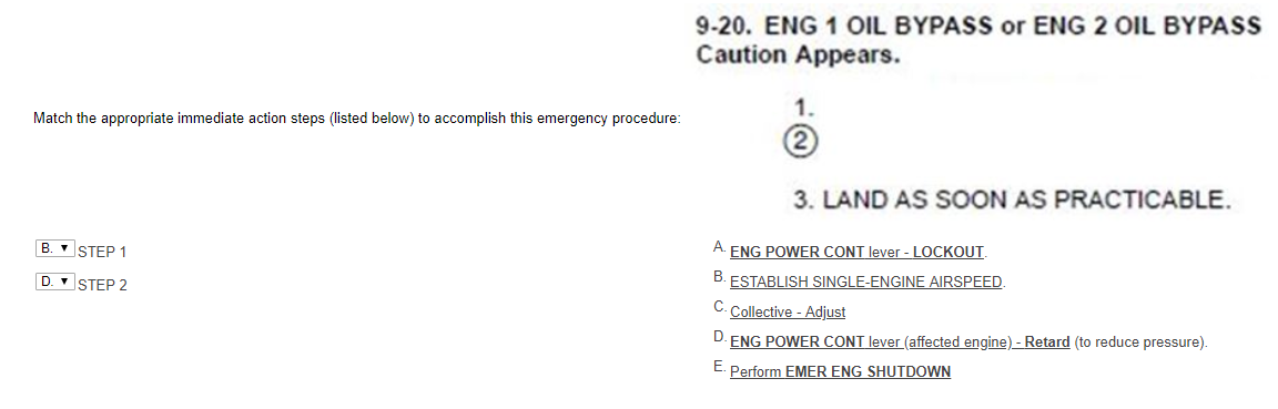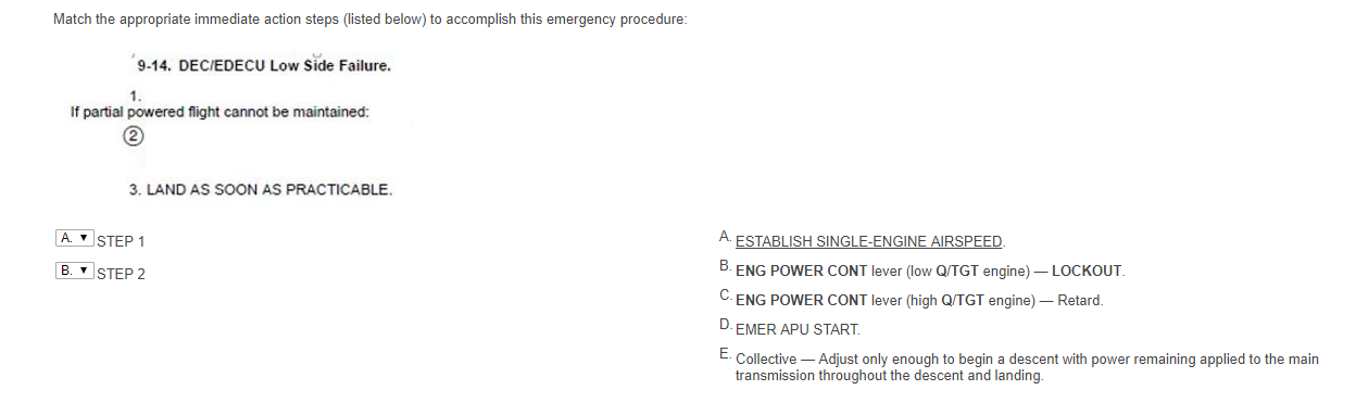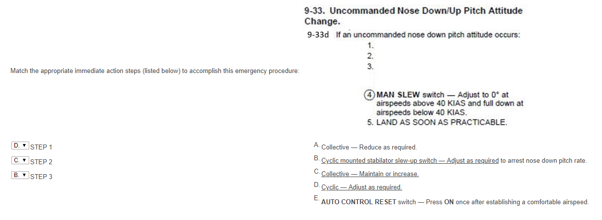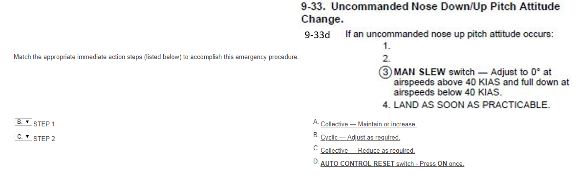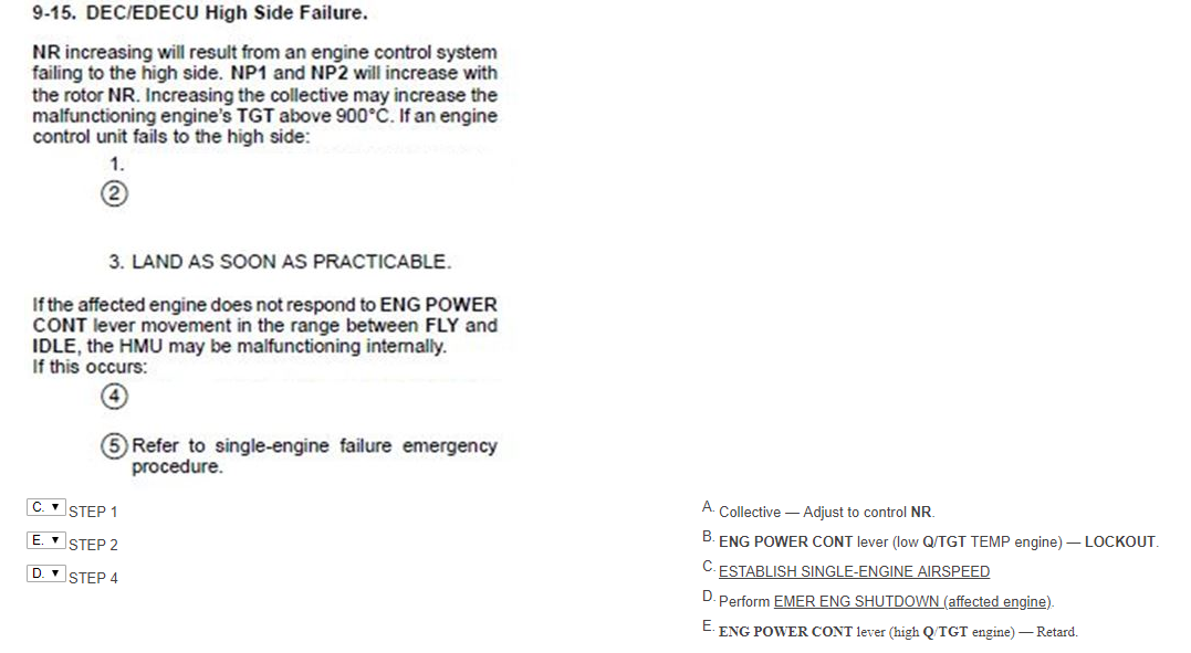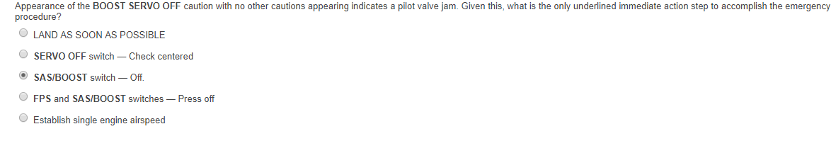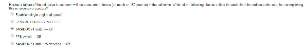 Hardover failure of the collective boost servo will increase control forces (as much as 150 pounds) in the collective. Which of the following choices reflect the underlined immediate action step in accomplishing this emergency procedure?