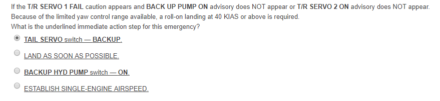 If the T/R SERVO 1 FAIL caution appears and BACK UP PUMP ON advisory does NOT appear or T/R SERVO 2 ON advisory does NOT appear.