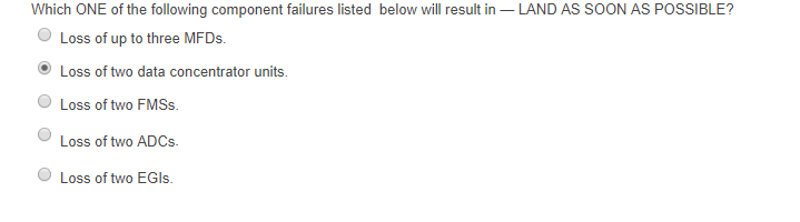 Which ONE of the following component failures listed below will result in — LAND AS SOON AS POSSIBLE?