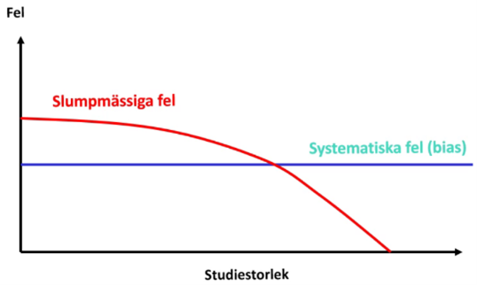 Hur förhåller sig slumpmässiga fel och systematiska fel till studiestorlek?