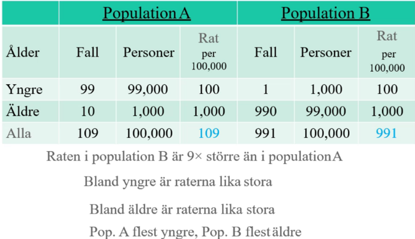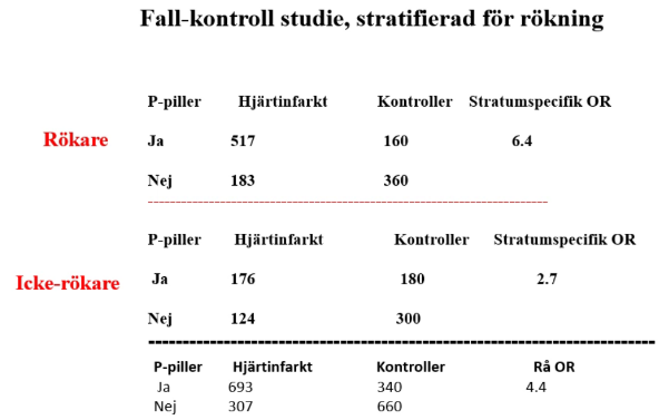 I stratifierad tabell kan vi alltså: