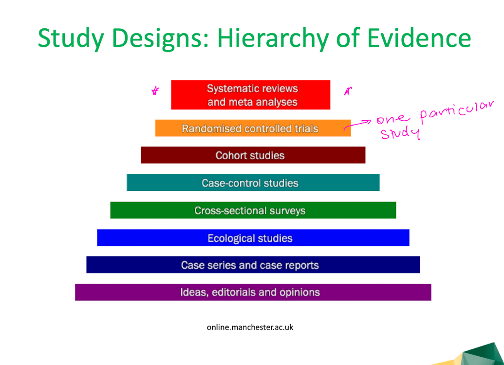 What is the hierarchy of evidence regarding study designs?
