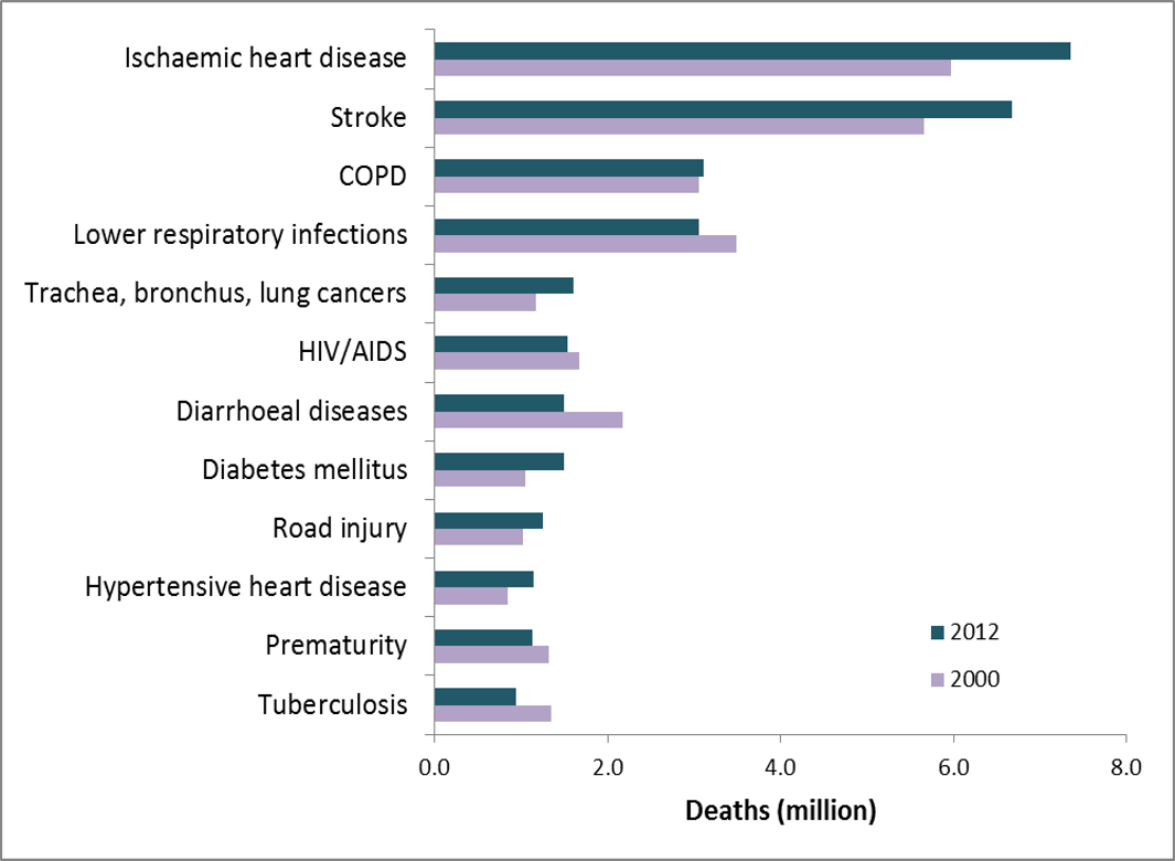 non-communicable diseases are responsible for 70% of the deaths in HIC and previously LIC eg China